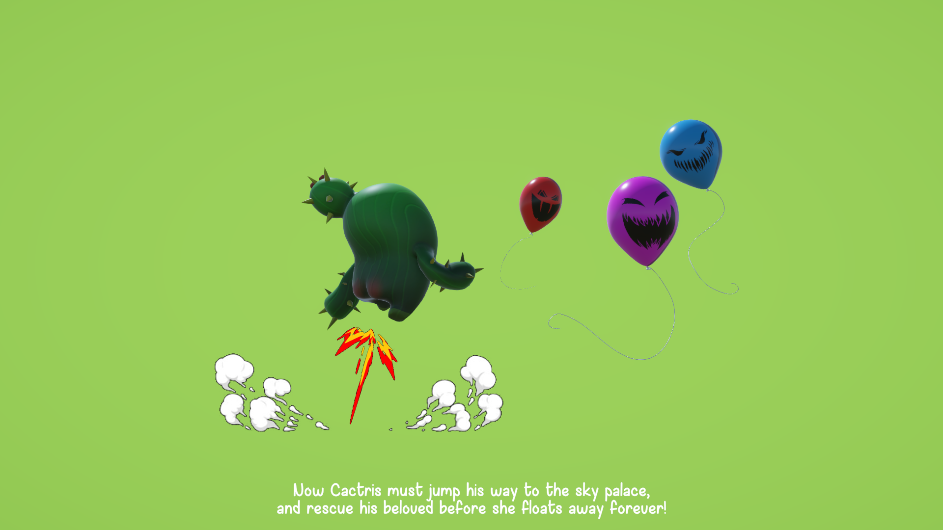 Cactris, the spikiest hero in the desert, must battle Balloon Head’s bubbly army to rescue his cactus queen, Cactamy! Classic platforming action with a sharp twist. One level. One love. One shot at not popping anything important.